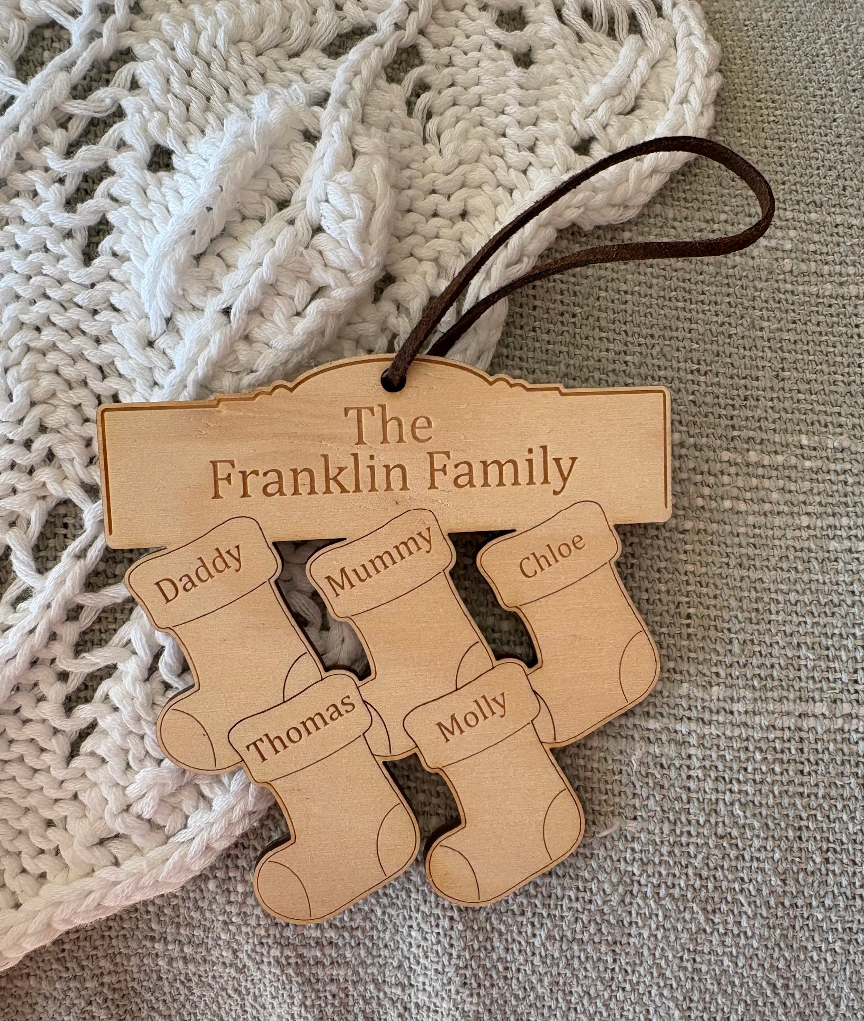 Christmas and family is a special time, we can laser engrave up to 14 names on these 3mm plywood decorations, Families and Grandparents will love having all the names together, we can even add a paw print if you want to add your pet to your family boot :)